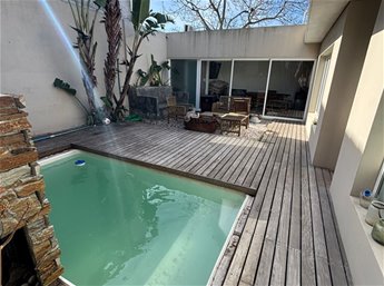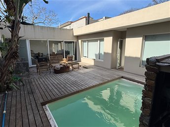 Muy linda casa en impecable estado, reciclada, a dos cuadras de la Rambla. Jardín al frente y cochera techada para dos autos y lugar para otro mas. Living comedor amplio con pisos de madera, con una muy linda cocina integrada con barra, muy luminosa. Dos dormitorios, tambien con pisos de madera, uno de ellos, el principal, con baño en suite y vestidor. El otro dormitorio es bien amplio y hay otro baño completo. Equipos de aire acondicionado en todos los ambientes. El fondo cuenta con piscina y deck de madera. Barbacoa cerrada con un baño completo, que tiene tambien entrada independiente.